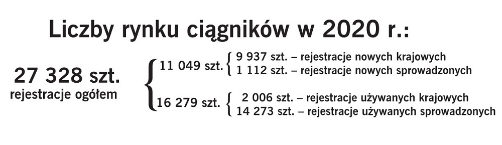 Polska Izba Gospodarcza Maszyn i Urządzeń Rolniczych podała, że w 2020 r. zarejestrowano 9937 nowych ciągników kupionych w Polsce. To o 1223 traktory więcej w porównaniu do roku 2019. Pandemia konoronawirusa nie wpłynęła więc na załamanie tego rynku i nie tylko wybroniła się przed załamaniem, ale nawet zdecydowanie poprawiła wynik liczony rok do roku (r./r.).