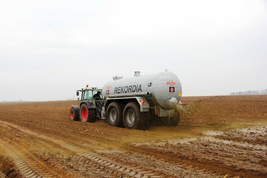 Wóz asenizacyjny Leszka Jemielitego współpracuje z ciągnikiem Fendt 312 Vario TMS o mocy znamionowej 110 KM. Rekordia połączona jest z traktorem poprzez górny zaczep automatyczny, wałek WOM, dwuobwodowe złącze pneumatyczne oraz dwie pary gniazd hydrauliki zewnętrznej. Dwa węże olejowe wykorzystywane są do zasilania bloku elektrozaworów z trzema sekcjami. Pozostałe wyjścia hydrauliczne przeznaczone są dla silnika orbitalnego napędzającego nożowy rozdrabniacz elementów włóknistych w gnojowicy, będący częścią składową systemu obróbki płynnego nawozu MeyloCut.