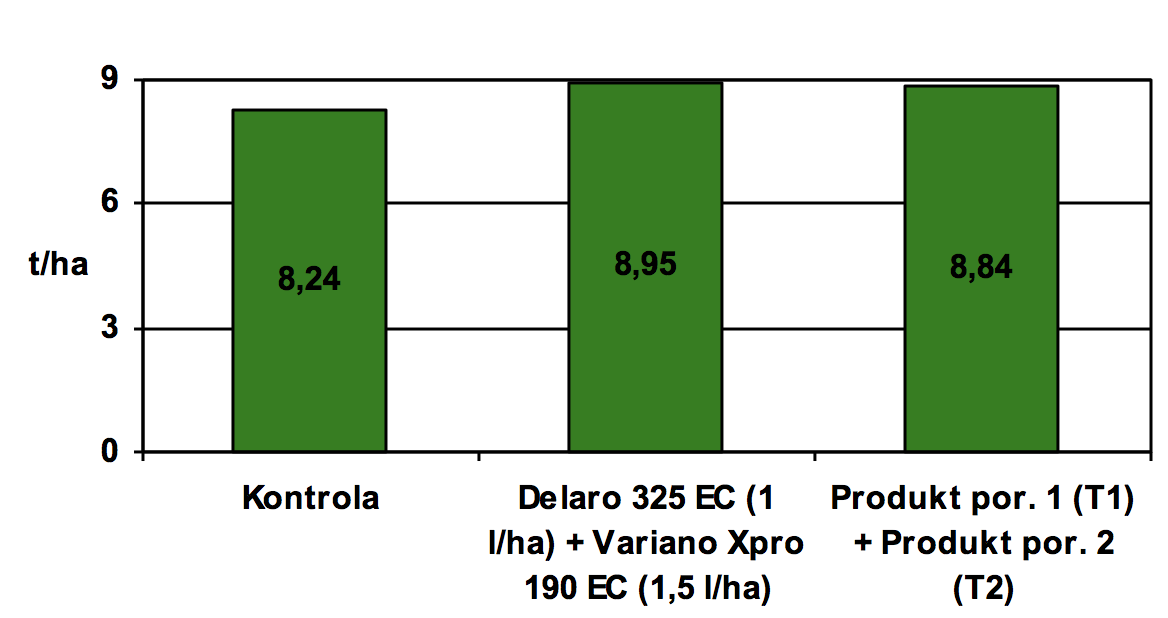 Zastosowanie programu ochrony opartego na dwóch nowych fungicydach Delaro 325 EC i Variano Xpro 190 EC zapewniło wzrost plonu ziarna o 0,7 t/ha (wykres 3).