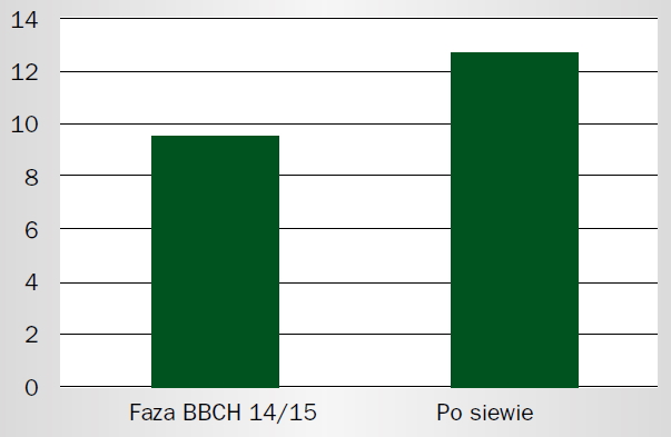 W uprawie na ziarno preferować należy jak najwcześniejszy siew, zaś na kiszonkę termin siewu można nieco opóźnić, bowiem okres wegetacji jest krótszy, a opóźnienie siewu sprzyja tworzeniu biomasy wegetatywnej. Siewy późniejsze sprzyjają szybszym i bardziej wyrównanym wschodom, ale obniżają plon i przedłużają okres wegetacji. Wczesny siew kukurydzy, ze względu na krótszy dzień na początku wschodów, jest czynnikiem plonotwórczym. Bardzo duży wpływ na plon mają także wczesne i wyrównane wschody. W przypadku łanów kukurydzy wschodzących 15-20 dni od siewu, straty roślin do momentu zbioru na plantacji mogą wynieść nawet 10-20 proc. Rośliny, które wschodzą tylko 3-4 dni później od sąsiadujących z nimi w łanie, przez cały okres wegetacji gorzej się rozwijają z powodu niedoboru światła i wykształcenia słabszego systemu korzeniowego. To z kolei prowadzi do słabszego zawiązywania kolb, a często nawet do ich niewykształcenia czy przedwczesnego dojrzewania. Bardzo dużym problemem wynikającym z nierównomiernych wschodów roślin kukurydzy wywołanych przyspieszeniem, względnie opóźnieniem terminu siewu, jest dobór optymalnego terminu zwalczania chwastów na plantacji. Później wschodzące rośliny mogą wykształcić 3 liście, podczas gdy te bardziej rozwinięte są już w fazie 6 liści. Te lepiej rozwinięte są dużo bardziej wrażliwe na substancje czynne herbicydów. Z uwagi na fakt, że zastosowanie herbicydów przypada w środku fazy zawiązywania kolb, dodatkowo pogarsza się też potencjał ich plonowania (rys. 1).