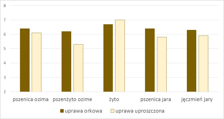 Rys. 2. Wpływ sposobu uprawy roli na plon ziarna zbóż (IUNG – PIB)